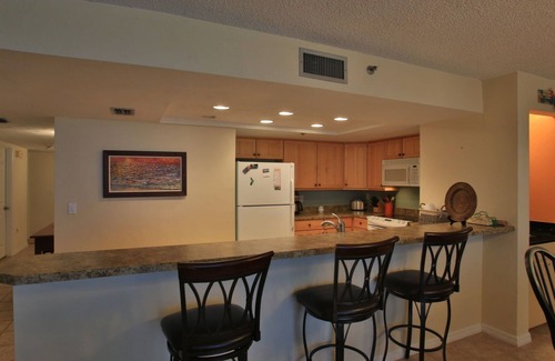 Inside, this 2-bedroom, 2-bathroom condo comfortably sleeps up to six with a king bed in the master suite, twin beds in the guest room, and a sleeper sofa in the living area. Additional features include ceramic tile flooring, an updated kitchen with modern appliances, and new, stylish furniture throughout.