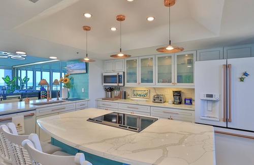 Step into this ocean-themed oasis on the 12th floor and feel instantly at home. This 2-bedroom, 2-bathroom beachfront condo features a refreshing coastal color palette that perfectly complements the décor and relaxed style throughout.