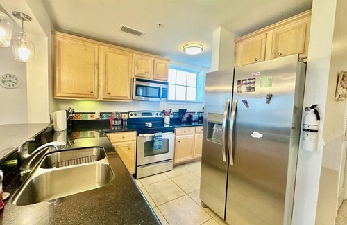 Enjoy all the amenities that this condo and this complex has to offer - including travertine tile floors, a tub in the master bathroom, granite countertops, stainless steel appliances. A washer and dryer in the unit to use during your stay.