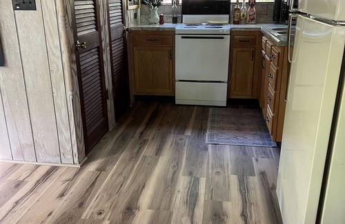 Kitchen is fully stocked with pots and pans, dishes, slow cooker, microwave, blender, wine glasses, utensils and most important a coffee maker and our coffee bar is stocked with coffee, basic creamers, and various syrups and sweeteners. There is nothing like that first cup of coffee in the morning out on the deck overlooking the lake.