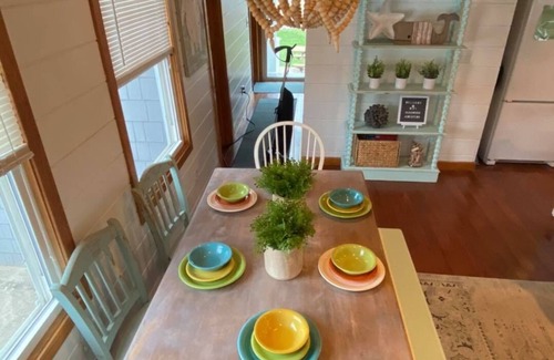 Step into a bright, open and airy space! There is a dining table that sits 6 comfortably. The kitchen area offers everything you will need for dining and cooking while staying with us and comes complete with coffee maker and microwave. The Beach Bungalow offers everything you will need for dining and cooking while staying with us! Please note that we DO NOT provide pillows, linens, towels or toiletries. You must bring your own. This allows us to keep our rental prices low and pass the savings on to you….so close to the ocean.