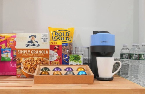 A warm welcome basket filled with snacks and refreshing water to kick off your stay!