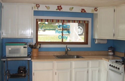 This property has a nice stable dock, lawn furniture, picnic table, and a fire pit. A row boat is available for guest use. We have a great beach area with lots of sand for the kids. The lake bottom is sandy with no weeks. The beach offers a gradual drop off. The bottom is 5' deep at the end of the dock (72 feet out). All in all, it offers great swimming for the kids. Sorry but pets are not allowed.