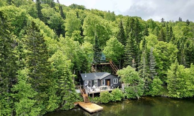 Our waterfront mini-chalet at Lac Trois-Saumons 🐟🐟🐟 is waiting for you! It is completely renovated to offer you all the necessary amenities for a comfortable stay as a couple, with family or friends. You can enjoy your morning coffee with the view of the frozen lake, you light a fireplace to warm up when you return from your outdoor outing and finish the evening in our SPA. Le cocoon is a mini-chalet with a modern style with rustic touches. It is completely renovated. Open concept, its modern and well-equipped kitchen and its living room with wood-burning fireplace, will allow you to have a good time in good company. Its closed bedroom (queen bed and bunk bed) and comfortable will allow you to recharge your batteries to enjoy outdoor activities. The bathroom is with shower. (A baby bath can be provided upon request.) The complete chalet is at your disposal for your stay. You can also relax on the patio on the edge of the lake or on the 2nd higher patio perched (with SPA) which offers a magnificent view overlooking the lake. In summer, you also have access to our private dock and can take advantage of our boats (2 kayaks and a pedal boat) offered free of charge. I will be available by message throughout your stay. Edge of the magnificent Lac Trois-Saumons. The lake is navigable and is about 6 km long. You can even use the public boat launch ($ fee for access and washing) if you have your own boat. The landscapes are magnificent 4 seasons. Several bucolic viewpoints given the altitude of the region. The outdoors is king. There is an impressive observation tower (free) located a few minutes drive away.A public park also gives you access to trails and additional access to the lake. For cyclists, the road around the lake will give you a nice circuit. In winter, you will have access to cross-country ski trails nearby. You can also take advantage of the frozen lake to improvise a private skating rink, go cross-country skiing, snowshoeing or even a healthy walk. For snowmobile enthusiasts, the trail passes nearby and is easily accessible from the chalet. The magnificent tourist village of St-Jean-Port-Joli is located 20 minutes away. You can discover local artists and sculptors, as well as eat at several restaurants. Camp Trois-Saumons is located nearby. It can accommodate your children or teenagers for a summer stay. There is something for every taste. The car is the means of transport to be favored 4 seasons. No public transport around. In winter, the chalet is also accessible by snowmobile. The terrain is steep. You have to take several steps to descend to the chalet, which is right on the edge of the lake.