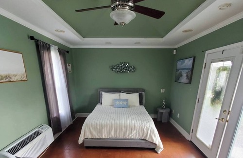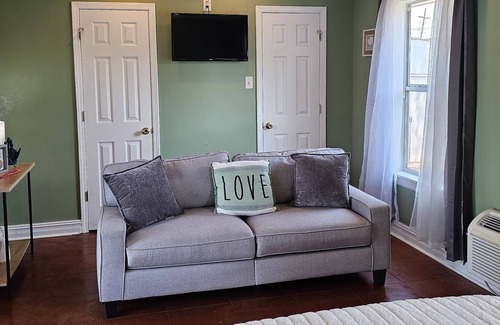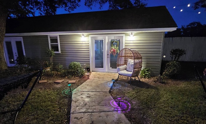 Kick back and relax in this calm, stylish and modern poolhouse. Fully furnished and ready for the perfect getaway for two by the pool and a backyard for date night and movie night. Located in the heart of Monroe Garden district . This is the perfect getaway and a short- term stay for work or visiting the area.