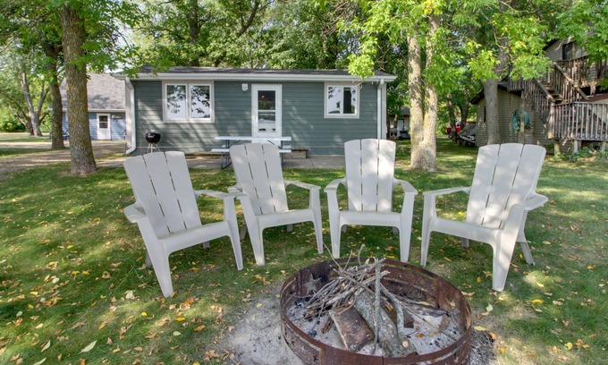 Your lake escape awaits when you retreat to this cozy 1-bedroom, 1-bathroom vacation rental in Rice, MN. With direct access to Little Rock Lake from the cabin’s yard, you'll be spoiled with on-site fishing and beautiful views of the sunrise touching the water. When you feel like going out, hit some pins at Great River Bowl, take a romantic stroll through Munsinger Gardens, or tee off at a nearby golf course. Complete your perfect stay with a picnic and stargazing by the cabin’s fire pit.