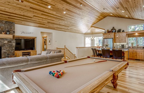 Escape the everyday and experience the extraordinary when you book this fantastic vacation rental in the lush mountainscape of South Lake Tahoe. This spacious cabin-like home is perfect for family reunions and group gatherings alike. Tour the area and discover local attractions like Magic Carpet Golf, Bijou Community Park, Pope Beach, Lake Tahoe Outdoor Arena, and local eateries and shops, all within a 15-mile radius. Opportunities to rent a boat, kayak, or paddleboard are available in the summer, with ski resorts nearby for the winter. After a day of adventuring, return home to soak in the bubbling hot tub or witness the sunset through the trees on the wraparound deck.
