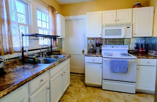 Beautiful & Specious Inxon Mammoth Cave Bungalow, Nestled just 1 blocks from Hidden River Cave, this 4-bedroomI, 2-bathroom, 2-living space, full kitchen, dinning room, sunroom, deck, outdoor dining Bungalow offers large group to come 'home' to Mammoth Cave! Featuring modern decor, a well-equipped kitchen, beautiful deck & Grill area, a prime location in a quiet neighborhood, next to the beautiful church this house allows you to focus on your family while exploring caves/natural wonders together! Bask in the fresh Kentucky air - book today!