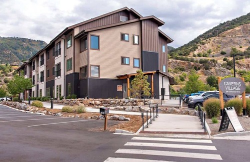 Situated near Colorado River, Caverns Village Lodging offers a modern 2-bedroom condo by Iron Mountain Hot Springs. Featuring an open kitchen, vapor fireplace, and cozy bedrooms with Smart TVs, it's ideal for a mountain retreat or remote work. Enjoy Glenwood Springs' attractions by foot, bike, or car, including hot springs, outdoor activities, and dining. Experience the best of the Rocky Mountains for a memorable getaway!