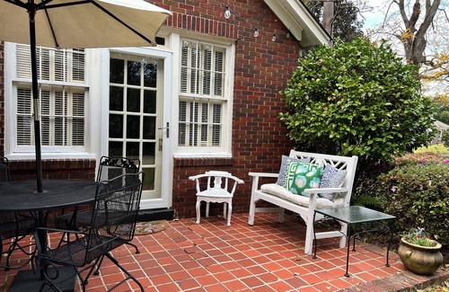 Modern luxury meets classic charm in this upscale 1930's cottage located in the heart of downtown North Augusta, steps away from Ironman race. This home is fully-updated, pristine, bright, and boasting with original character like its round-top front door, glass door knobs, transoms above doorways, hardwoods throughout, and two fireplaces. Delightfully classic details of the home pair well with modern amenities in the gorgeous kitchen and updated bathrooms. The three bedroom, two bath cottage is perfect for a Masters retreat. The primary has a King Bed/Tempur-pedic Mattress, sitting area, secretary desk, and ensuite bathroom with double vanity. Another large bedroom is equally lovely with gorgeous windows adding lots of natural light, a Queen Bed and vanity. The Queen Room shares a bathroom with another bedroom equipped with a Double Bed and vanity. The oversized living room is as chic as it is cozy with a wood-burning fireplace, and pull-out sofa bed which can comfortably accommodate two additional guests. The downstairs basement (19x19), with beautiful wood beams and the second fireplace, has been converted to a gameroom/workout space and has a ping pong table, sitting area, games, sole treadmill, nordic track recumbent bike, and horizon elliptical. Escape a little of the hustle and bustle of crowds and walk to dinner at a local restaurant, enjoy ice cream at The Pink Dipper, a milkshake at Sno Cap, or simply enjoy the blooming azaleas from one of the home's outdoor areas (which include a side patio, back deck with fire table and hot tub, or heated/cooled screened and glassed-in porch).