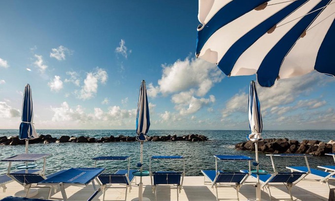 Ischia Blu Resort offers direct access to a private, equipped beach in Ischia Porto, and is near the ferry harbor for connections to the mainland. It offers bright and spacious studios and apartments, most overlooking the sea. WiFi is free. The accommodations features air conditioning and a flat-screen TV with satellite channels. The style is traditional, with tiled floors and wooden furniture. Each unit has a private terrace or patio, furnished with table and chairs, and some have a parasol. Blu Resort Ischia is 328 feet from a local bus stop, and a 10-minute walk from the shopping area of Corso Vittoria Colonna. Transfers can be organized from/to Naples and Rome by limousine and hydrofoil.