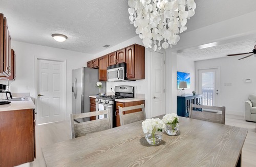 Beautiful canal waterfront stilt home in Key Largo. Home features concrete sea wall and boat lift. Easy access to the Gulf of Mexico and within minutes of the Atlantic Ocean. You are minutes away from amazing fishing and diving spots. The home is completely updated, with smart TVs in each room, indoor laundry room, and a fully equipped kitchen as well as high speed internet access. Master bedroom includes a queen bed and private bath room, as well as access to a uncovered balcony with beautiful sunset views. There is a guest bedroom which also has a queen sized bed. The third bedroom includes two twin beds.