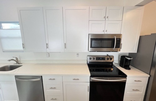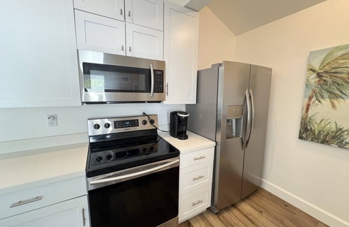 -Modern Kitchen: The fully equipped kitchen offers stainless steel appliances and ample counter space for preparing delicious meals. There is a Keurig.