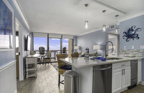 Embrace coastal charm within our condo, a soothing sanctuary adorned with beach-inspired decor. Seashell accents and soft, beachy hues infuse every corner with shoreline serenity. Two inviting bedrooms promise restful nights after beach adventures. The fully-equipped kitchen beckons your inner chef, boasting modern appliances and ample space. Step onto your private ocean-view balcony for front-row sunrises and sunsets. The open-concept living area offers relaxation and entertainment, complete with comfy seating, a TV, complimentary Wi-Fi, and the convenience of a washer and dryer. Your tranquil seaside escape awaits.