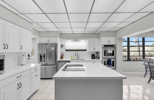 There is a fully equipped kitchen, whether you're a seasoned chef or an aspiring home cook, every meal preparation is a delight in this large kitchen with views of the water. Enjoy your family meals at the dining table also offering waterfront views!