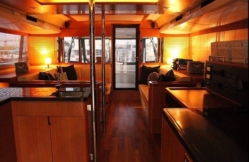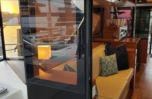 48' Catamaran Luxury Motor Yacht 24ft wide 4 staterooms 4 shower 4 heads 3 sit around table areas 1 inside 2 covered outside. Bluetooth radio, spacious kitchen stove top, microwave, refrigerator, sink Air Conditioning. Kayak on davit, swim platform that lowers into the water. . CaptainAndrewHarden at the ggg mail 2five1 2four8 WELL 9threefive5