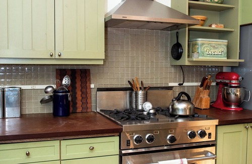 Escape the noise and step into the stillness of Hemlock Haus—a cherished family cabin nestled in the woods of Spencertown, NY. Tucked down a private road surrounded by towering hemlocks, this semi-rustic retreat has been lovingly built and styled with materials gathered directly from the land, including reclaimed floors and hand-collected stones that line the walls. With room for up to 7 guests, the home is equal parts soulful sanctuary and laid-back gathering space.