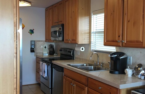• Fully Equipped Kitchen: Modern appliances, including a large convection oven, Keurig and regular coffee maker, tea pot, beverage refrigerator, blender, microwave, dishwasher, and more.