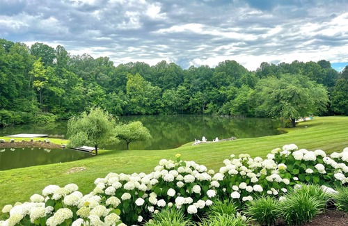 Welcome to your ultimate getaway: Ivy Springs Retreat. Situated on a stunning 15 acre property, the expansive grounds feature multiple exterior entertaining spots, a private lake, heated saltwater pool and hot tub. The interior boasts 5 bedrooms, 6.5 baths, a 22-person dining room, a newly completed game room, an elevator for easy second floor access, and plenty of spaces to entertain, both indoor and outdoors.