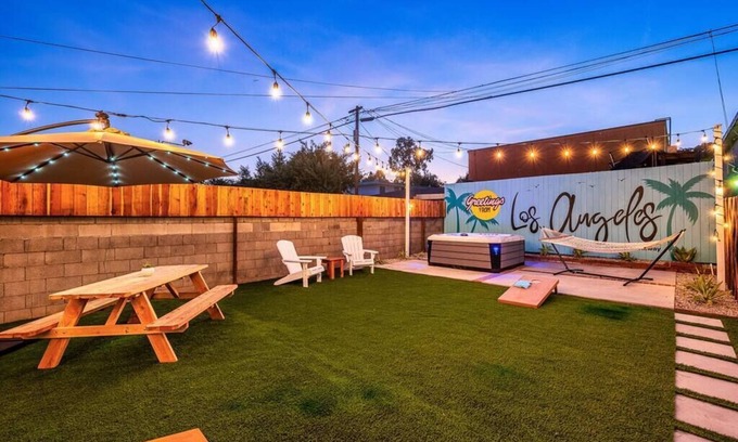 Welcome to @FranksGetaway - the MOST fun and relaxing Airbnb in Los Angeles with a full GAME ROOM & JACUZZI! Our house is only 5 minutes from the Sofi Stadium! Unwind inside our wonderfully themed oasis with all the amenities you need. Get your game on in our amazing game room which includes a 55” TV, ping pong table, foosball and a basketball arcade and then unwind and relax in our oasis of a backyard with an incredible 6-person jacuzzi, hammock, bbq, cornhole and string lights at night. Frank’s Getaway is the perfect getaway for couples, groups of friends & family, business stays and long-term rentals. If you’re coming to enjoy a game or concert at the new SoFi Stadium or The Forum (and upcoming Intuit Stadium), our home is the place you want to be! We are only 5 minutes away! Located in Hawthorne, the City of Good Neighbors (home of the Beach Boys), the central location of Frank’s Getaway does not get any better! We are SO close to everything: Sofi Stadium - 5 minutes (3 miles) SpaceX - 2 minutes (< 1 mile) The Beach - 12 minutes (5 miles) Top Golf - 8 minutes (4 miles) LAX Airport - 8 minutes (4 miles) Downtown LA - 20 minutes (14 miles) Venice - 18 minutes (11 miles) Santa Monica - 16 minutes (14 miles) Malibu - 35 minutes (27 miles) Disneyland - 40 minutes (30 miles) Hollywood - 30 minutes (15 miles) Looking to work from home? Our internet is faster than a roadrunner outrunning the tasmanian devil ;) Looking to NOT work from home? Enjoy the brand new hot tub and hammock, perfect for private relaxation. Everything in the space is designed to create a relaxing and fun environment for you to enjoy! The space Check us out on for the most up to date info, photos and video! @FranksGetaway Our wonderful home is maximized to fit up to 8 people. It's a cozy fit, but we make it work perfectly. The home is furnished with (1) queen size bed, a bunk bed with (2) full-size mattresses and (1) twin-size trundle, and the couch in the living room is extremely comfortable to sleep on (trust us, we’ve done it once or twice - ha!). If you need an additional inflatable mattress, we can accommodate that. Inside the kitchen, you'll find all the silverware, cooking utensils, pots, pans, plates, BBQ tools, wine glasses, etc. you need to cook yourself dinner from scratch. Or, you can utilize the awesome BBQ in the backyard and grill-out like the true sports fan you are! Also included is a coffee maker, Keurig, toaster, etc. Inside the living room you’ll find a massive 65” flat screen TV equipped with Netflix, Hulu, Sling and more! Inside the garage game room, you’ll find a 55” flat screen TV also equipped with Netflix, Hulu, Sling and more! With these (2) TVs, you won’t miss a game! You’ll also find plenty of blankets to cozy up and tons of board games to enjoy with your family/friends. We have a fantastic 6-person dining table inside the home and a massive picnic table in the backyard for you to enjoy. The home is (2) bedrooms and the beds are extremely comfy and come with plenty of pillows. There is plenty of closet space and drawers for your belongings. AC & heat controlled from a Nest device, for your comfort. In terms of amenities, we've got you covered too! You'll have access to small, yet important, things like: An iron, blow dryer, towels, soap, shampoo, conditioner and bodywash, paper towels, and more. We have a fantastic, in-depth welcome binder that details everything you need to know about the home, wonderful food/drink recommendations in the area AND we even have a welcome gift for each guest stay :) Our house is so perfect, you'll want to stay forever (and we hope you do!) Self Check-in :) You'll have access to our entire home! The entire house itself, the game-room and the entire backyard are all yours to use and enjoy. There is 1 parking spot in our driveway and plenty of street parking (be mindful of parking signs in the area). We (George and Kayla) live locally and are always available if you need anything or if an issue arises. You’ll have both of our contact info and we’re just a quick message away! We have a full guest book/manual for everything in the house. We also provide our contact info and are available if you need anything or have special requests :) Located in Hawthorne, the City of Good Neighbors (home of the Beach Boys), the central location of Frank’s Getaway does not get any better! We are SO close to everything: Sofi Stadium - 5 minutes (3 miles) SpaceX - 2 minutes (< 1 mile) The Beach - 12 minutes (5 miles) Top Golf - 8 minutes (4 miles) LAX Airport - 8 minutes (4 miles) Downtown LA - 20 minutes (14 miles) Venice - 18 minutes (11 miles) Santa Monica - 16 minutes (14 miles) Malibu - 35 minutes (27 miles) Disneyland - 40 minutes (30 miles) Hollywood - 30 minutes (15 miles) We are literally down the street from SpaceX, Ring, Amazon...2 wonderful breweries are a few minutes away. Costco is around the corner as well as several grocery stores. Plenty of places to eat...and again, SO CLOSE to all LA has to offer :) The neighborhood is walkable, Uber/Lyft is extremely easy. There is a Tesla Supercharger a minute away and another Tesla Supercharger (5) minutes away. Street parking is plentiful (just be aware of parking signs). 1 parking spot is available in the driveway :) In an effort to keep the entire property more secure, we have a Ring floodlight camera on the front of the garage facing towards the street and a Ring doorbell camera at the front door. There are no other operating cameras at the home. We want you to have a great time, but please be respectful of our home and more importantly, our neighbors. We do not allow any parties at our home. We operate a device called Wynd Sentry which actively monitors noise and smoke (tobacco, marijuana & vaping) and alerts us if there is noise and/or smoke detected. It also creates a report of the alerts. We love our home and our neighbors, and we hope you would treat it in that way as well :) Please message u