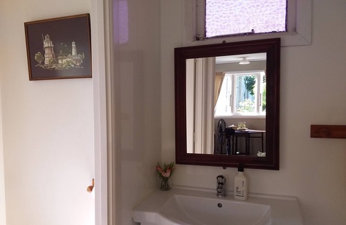 The kitchenette has a small fridge with freezer compartment, a microwave and a small sink. There is a portable double element unit but no oven therefore is not equipped for all the cooking needs you may require – more suitable for those who want to enjoy the various restaurants in Coromandel.