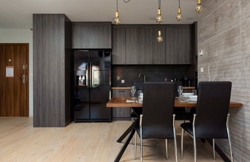 The space of the apartment includes a living room with a kitchenette, bedrooms and a bathroom with a shower. A spacious balcony with garden furniture will be a great place to relax. The apartment is distinguished by modern design, aesthetics and functionality. The living area equipped with a sofa bed and TV is a perfect place to rest and relax, additionally, a fully equipped kitchenette (including a dishwasher, fridge with an ice maker, coffee maker) allows you to prepare your favorite meals. The apartment also has a cozy bedroom with a comfortable bed. Pleasant design and comprehensive equipment with the necessary kitchen and bathroom accessories guarantee a comfortable stay. Parents traveling with a child will also find a cot for their child.
