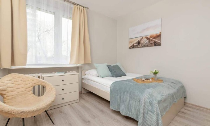 Jagiellońska 40A | Pleasant apartment | Balcony has 1 Bedroom , 1 Bathroom, and max occupancy of 4 people. The minimum rental for this property is 1 nights, but this can change depending on the season you plan on staying. Previous guests have given good rated it, and VRBO labeled it a top-rated Apartment because of the excellent services rendered by the owner or manager of this Apartment, and has consistently provided great experiences for their guests. Most families or guests that use it recommend it to their friends and some of them are repeat guests. Apartment has a friendly neighborhood, and the Przymorze has interesting places to visit. If you want to learn more about the Apartment in Przymorze, such as places to visit and things to do nearby, you can check below to learn more.