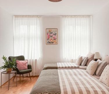 Jako doma - centrally located apartment offers accommodations in Liberec, 30 miles from Szklarska Poreba Bus Station and 30 miles from Izerska Railway. The property is around 16 miles from Zittau Goerlitz University of Applied Sciences, 29 miles from Szklarki Waterfall, and 29 miles from Kamienczyka Waterfall. Free Wifi is available throughout the property and Ještěd is 8.8 miles away. The apartment features 3 bedrooms, a fully equipped kitchen with a dishwasher and an oven, a washing machine, and 1 bathroom with a hair dryer. Towels and bed linen are provided in the apartment. This apartment is allergy-free and non-smoking. Vaclav Havel Prague Airport is 76 miles away.