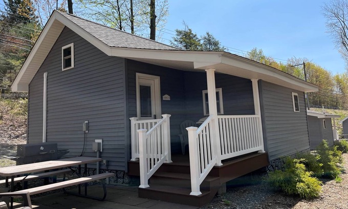 Located steps away from Lake Wallenpaupack, our Spinnlers Cabin sleeps 4 people with a bedroom with a queen size bed and 2 twin beds in the loft. The cabin has a full kitchen complete with pots and pans, electric range, Keurig coffee maker, fridge, and microwave. A full bathroom with tub round are also located on the first floor. Outside you'll find a charcoal grill, picnic table, chairs, and fire pit. Bringing up a boat? Ask about our dock slips or dry dock options.