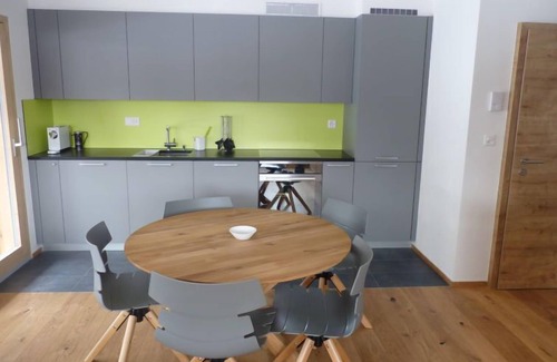 "Jardins d'Helene", 3-room apartment 74 m2 on 1st floor, south-west facing position. Object suitable for 2 adults + 2 children. Practical and modern furnishings: living/dining room with flat screen. Exit to the balcony. 1 room with 1 french bed (160 cm, length 200 cm). 1 children's room with 1 x 1 bunk beds (85 cm, length 180 cm). Open kitchen (4 ceramic glass hob hotplates, electric coffee machine, Capsules for coffee machine (NESPRESSO) extra, raclette grill, fondue Set (cheese)). Shower/WC. Large balcony 27 m2, south-west facing position. Balcony furniture, deck chairs (3). Beautiful view of the mountains. Facilities: washing machine, hair dryer. Internet (WiFi, free). Parking space n 4 (1 car), garage space n 4 (1 car), height 210 cm, width 230 cm. E-charging station. Please note: suitable for families. Non-smokers only.