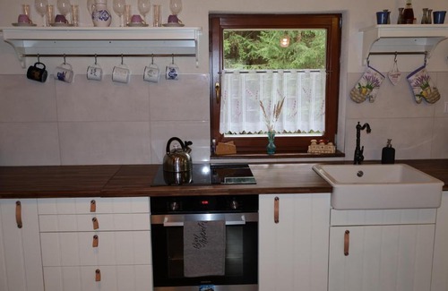 Providing a shared lounge, Jariabka Chalet Zrub Nízke Tatry provides accommodations in Jarabá. 17 miles from Chopok mountain and 30 miles from Aquapark Tatralandia, the property offers a garden and barbecue facilities. There's an outdoor fireplace and guests can use free Wifi and free private parking. Offering a terrace and mountain views, the spacious chalet includes 2 bedrooms, a living room, flat-screen TV, an equipped kitchen, and 1 bathroom with a walk-in shower. Guests can enjoy an ambient stay in their soundproof room with parquet floors and a fireplace. The property has an outdoor dining area. Guests at the chalet will be able to enjoy activities in and around Jarabá, like hiking. Skiing and cycling can be enjoyed nearby, while a bicycle rental service, ski-to-door access and ski storage space, are also available on-site. Poprad-Tatry Airport is 39 miles from the property.
