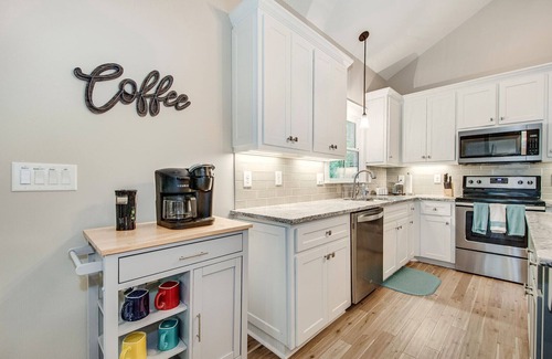 State of the art kitchen features new Whirlpool appliances, four additional countertop seats and plentiful colorful fiesta dishes and serving pieces for festive dining. Of course coffee maker with both single serve and full pot features is always inviting our guests to fragrant morning coffee. Truly, you will find everything you need to complete your ultimate lakeside vacation.