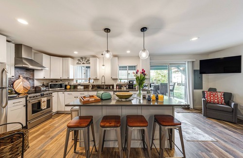 Welcome to your perfect river escape! This stylish and spacious two-bedroom, two-bath home features an open floor plan and comfortably sleeps up to six guests. Set on a serene riverfront property with stunning mountain views, it's the ideal getaway for nature lovers and relaxation seekers alike.