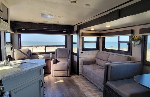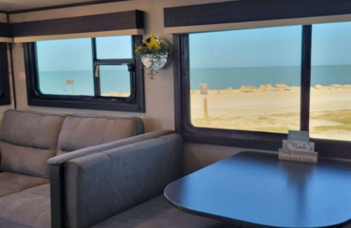 New RV with fantastic views to Matagorda Bay. This RV provides all the comforts of home while you are able to come visit and explore the Magnolia Beach Area.