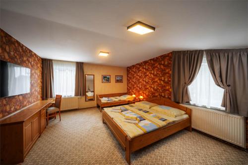 JazzPenzion enjoys a location in Čadca, 26 miles from Strecno Castle and 13 miles from Zagron Istebna Ski Resort. This guest house provides free private parking, an elevator, and free Wifi. Budatin Castle is 18 miles away, and Museum of Skiing is 21 miles from the guest house. At the guest house, every unit includes a wardrobe, a TV, a private bathroom, bed linen, and towels. The rooms are equipped with heating facilities. Buffet and continental breakfast options with warm dishes, fresh pastries, and fruit are available. There is an on-site bar. John Paul II Route in Beskid Zywiecki is 24 miles from the guest house, while Lietava Castle is 25 miles away.