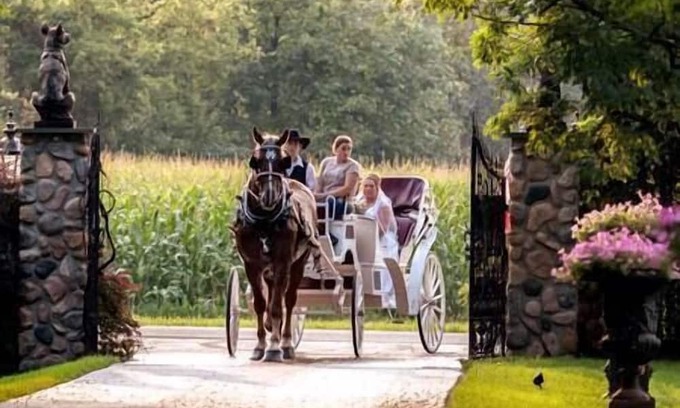 The Seneca suite features private two bedrooms and one private bathroom. There are two other single-bedroom suites on the property with private bathrooms. Minutes from the airport, Rochester, and year-round events in Finger Lakes Region. Take a stroll through the museum and expansive gardens. Walk, bike, snowmobile, or cross-country ski 35 miles of maintained trails (Genesee Valley Green Way Park) Relax in overnight accommodations with the right amenities and friendly hosts. Full renovations completed in 2023. This suite has a warm and comfortable feeling. You have two bedrooms and a private bathroom with a walk-in shower. Livingroom with a television and desk for working. Full Kitchen with dishwasher and all the cooking and dinnerware. Very quiet space that is a great getaway or when traveling to the area for an event. There are several property features outside your private suite. Laundry room, patio with fire pit, separate cottage for meeting and reading space, Private museum, with pool table and grand piano (tour by appointment) Spacious grounds include gardens, pond, creek, and 35 miles of maintained trails. Bikes are available from May through October to ride the Genesee Green Way Trail. Jim, Kathy, Matt, and Jim are always available throughout your stay to assist in any way. Jerris Country Estate is surrounded by prime farmland and Genesee Valley Green Way State Park. The 90-acre estate is full of gardens, woodlands, sitting porches, a pond, a creek, and outdoor sculptures to explore. On the property is a private antique and artisan museum the estate owner has collected over 45 years. Located near the country village of Avon is great for antiquing, restaurants, groceries, town festivals, and a stroll around the town square. You are minutes from Genesee Country Museum, Genesee Valley Railroad Museum, National Warplane Museum, NYS Transportation Museum, Rochester International Airport, Rochester Institute of Technology, SUNY Geneseo Collage, Caledonia Country Club, Fairview Golf Course, Wild Wood Country Club, Lima Golf and Country Club, Avon Centry Wedding Barn, and Oak Knolles Manor Wedding Barn. The Jerris Wadsworth Wedding Barn is located on the Estate and hosts weddings on Saturdays from May through 2nd week of November. Just a short walk from the estate property, the Genesee Valley Greenway State Park (GVGSP) hosts a paved and highly maintained path on an abandoned railroad bed with 35+ miles of scenic woodlands, river and stream valleys, rolling farmlands, steep gorges, and historic villages located in sixteen towns in Monroe, Livingston, Wyoming, Allegany, and Cattaraugus counties in New York State. Great for biking and walking getaways. Easy access from three driveway entrances leads to a large paved parking lot. The guest is welcome to pull up near the Air BNB to unload and load their personal items. Two Bikes are available for use on the Genesee Valley Trails. $20.00 Rental for Three Days The Jerris Wadsworth Wedding Barn is located on the property and hosts wedding receptions on Saturday nights. During the winter there is an annual antique and collectible show in the wedding venue space.