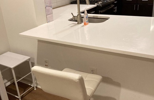 The spacious 750 square feet furnished 1B1B residence is located at Jersey City waterfront, facing south with a lot of sunlight, room amenity includes walk-in closet, in-unit washing and dryer, dish washer, oven, Microwave, dishwasher, refrigerator and WiFi. There are only a few steps away from state of the art gym, easy street parking. It takes 10-15 min to New York City, 9 min walk to PATH Exchange Place station, and 4 min walk to Light Rail Essex Street station. There is a convenient playroom for infants/kids.