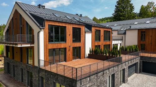 Jezerní Rezidence features air-conditioned accommodations in Železná Ruda. Private parking is available on site at this recently renovated property. The condo hotel provides river views and a picnic area. The condo hotel provides guests with a terrace, mountain views, a seating area, a flat-screen TV, a fully equipped kitchen with an oven and a microwave, and a private bathroom with walk-in shower and free toiletries. A fridge, a stovetop, and kitchenware are also offered, as well as a kettle. At the condo hotel, units have bed linen and towels. Ski storage space is available on-site and skiing can be enjoyed close to Jezerní Rezidence. Drachenhöhle Museum is 31 miles from the accommodation. Ceske Budejovice Airport is 73 miles from the property.