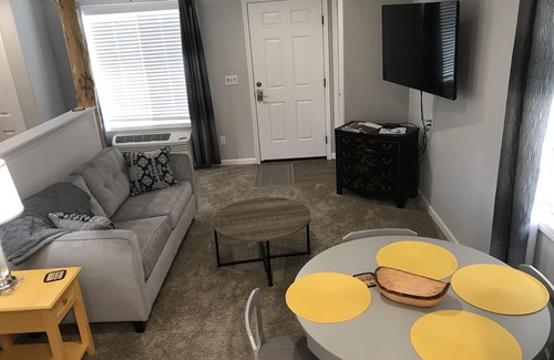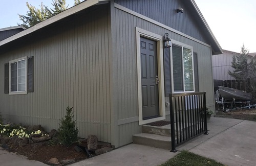 Cozy retreat located in a quiet neighborhood in the hub city of Redmond, 9 minutes to the airport, 10 miles to Smith Rock Park, 14 miles to Bend and 18 to Sisters. This studio has all the luxuries you would expect with amenities perfect for two, can sleep four with a pullout couch. Enhanced Covid cleaning protocol. Close to restaurants and grocery shopping. Direct laundry access at your request. Treat yourself to this ultra-clean space and save $ by eating in. Fully equipped kitchen, toaster, Keurig (coffee provided), Wi-Fi, satellite TV, AC. Table for meals or work space; big-screen, smart tv. Private parking and entrance, self check-in. Comfort plus!! We cannot accommodate pets at this time.