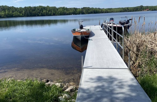 Forget your worries in this spacious and serene space. Johnson Lake Landing can sleep up to 10 guests and makes the perfect family retreat year-round! The house features an open entertaining area, attached garage, and a game room with poker table, bubble-hockey, and shuffleboard, as well as a huge TV for watching the game. There are two private bedrooms (one with queen bed, one with king bed), and a third bedroom with a queen bed and bunk beds.
