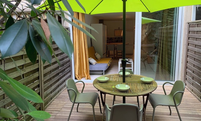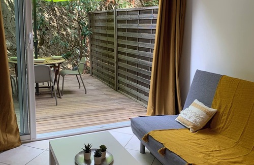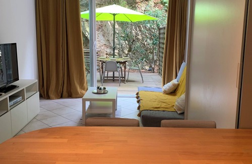PRETTY IN TOULON T1 NEAR BEACHES MOURILLON TERRACE FACING SOUTH IN A QUIET SETTING WITH TREES.