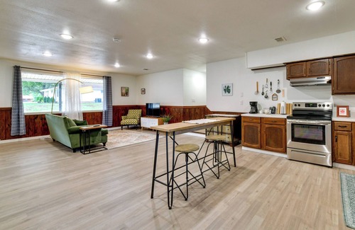 Unwind and rejuvenate in this 2-bedroom, 2-bathroom modern-boho Jonesboro vacation rental. Conveniently nestled 3 miles from Arkansas State University, this single-story house boasts inviting furnishings, a fireplace, an outdoor dining area, and plenty of outdoor space. Hit the links of North Hills Golf Course, get fast and furious at Crowley's Ridge Raceway, plan a hunting trip at River Chase Farms, or embrace the outdoors at Lake Frierson State Park.