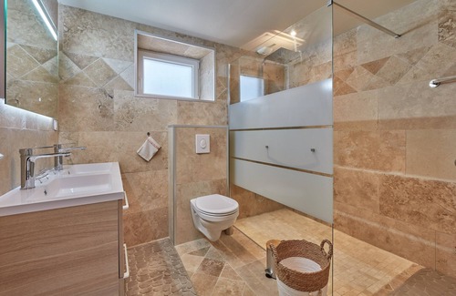 - Bedroom 2: double bed (140×190) and en-suite shower room with WC