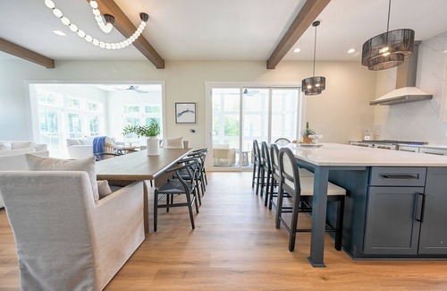 Whether you’re enjoying wine by the fire pit, launching kayaks, or lounging on the deck after a beach day, this is the perfect getaway for families and groups — sleeps 14 comfortably.