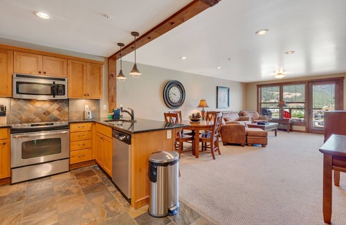 Spacious 1 bedroom condo offer granite counter tops, open floor plan and a murphy bed in the living room. Condo includes patio with BBQ and excellent views of the Mountain and Village.