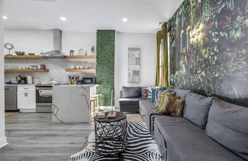 Jungle Dream Loft! 3 Bed/Wine/Balcony/Parking! has 2 Bedrooms , 1 Bathroom, and max occupancy of 6 people. The minimum rental for this property is 1 nights, but this can change depending on the season you plan on staying. Previous guests have given good rated it, and VRBO labeled it a top-rated Apartment because of the excellent services rendered by the owner or manager of this Apartment, and has consistently provided great experiences for their guests. Most families or guests that use it recommend it to their friends and some of them are repeat guests. Apartment has a friendly neighborhood, and the Downtown Baltimore has interesting places to visit. If you want to learn more about the Apartment in Downtown Baltimore, such as places to visit and things to do nearby, you can check below to learn more.