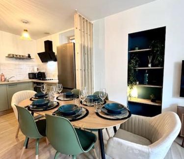 Jungle Haven - Romans-sur-Isère is located in Romans-sur-Isère, just a 5-minute walk from International Shoe Museum and 6.2 miles from Valence TGV Train Station. Guests can go for a swim in the heated pool. Free Wifi is available throughout the property and Valence Parc Expo is 12 miles away. The apartment features 2 bedrooms, a fully equipped kitchen with a dishwasher and an oven, a washing machine, and 1 bathroom with a hair dryer. Towels and bed linen are featured in the apartment. The accommodation is non-smoking. Valence St Didier Golf Club is 10 miles from Jungle Haven - Romans-sur-Isère, while Valrhona Chocolate Factory is 11 miles away. Alpes–Isère Airport is 42 miles from the property.