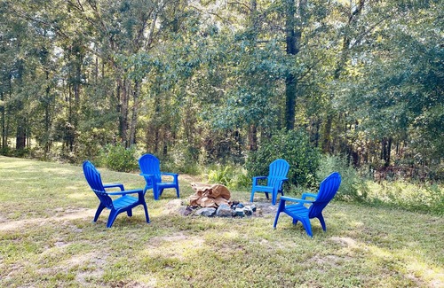 This is a beautiful home built in 1950. The home sits on the front of the 10 acres, with Juniper Creek running through the middle of the property. We have worked to keep the home’s original charm, by exposing the stick built vaulted ceilings and heart pine floors, and refinishing the original claw foot tub. The ceilings are not enclosed (see photos). Many of the furnishings in the home are original to the time period in which the home was built. If you see something you like, it just might be for sale! Message the host to ask about pricing. Originally there was no central heat and air in the home so we installed a mini split unit, which heats and cools the home. There are additional fans and heaters in each bedroom, if needed. The bedrooms tend to get warmer in the summer and colder in the winter. The kitchen boasts its original cabinets, with a new butcher block top. There is a vintage style mid-sized refrigerator, a full size stove/oven, microwave, and drip coffee maker. There are additional kitchen items. The bathroom boasts a beautifully restored claw foot tub. We have high speed WiFi available via Starlink. There is a smart TV available in the living room. You can also stream to your own devices, using our high speed internet. The cell and internet service is great. There are books and games available, as well as plenty to enjoy outside. There is a shower nozzle that can be used in the tub as well. The intent of this property is to be a place to unplug and connect with one another and with nature.