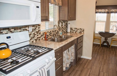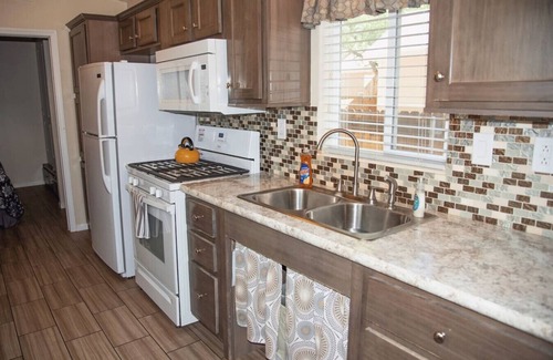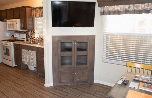 Designed for comfort and accessibility, this 1 bed, 1 bath ADA-compliant retreat sleeps 4 with a king bed and pull-out sofa. Pet friendly and minutes from downtown Moab, it’s also a short drive to Arches and Canyonlands. Enjoy a full kitchen, climate control, Wi-Fi, and a porch perfect for unwinding. Oversized vehicle and trailer parking is available on a first-come, first-served basis.