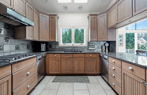 For wellness and recreation, guests can take advantage of the home’s private gym area with free weights, yoga equipment, and a rejuvenating sauna perfect for those who want to keep up with their routines or indulge in restorative downtime. The lower level also includes a fun-filled game area, ensuring endless entertainment for all ages.